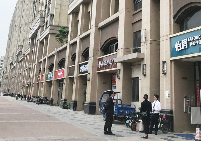 商场对面的花城湾小区,目测入住率不超过3成。小区正对万达的300米临街店铺,分布着14家房产交易门店,占了开业店铺的四分之三。 不少中介面对我这个“着急卖房的花城湾业主”,头都懒得从电脑前挪开,交换联系方式的意思更是没有。