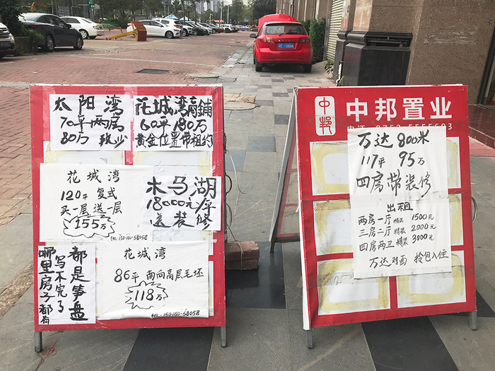 毕竟对他们来说,最不缺的就是“笋盘”,有中介直接在店门外摆上“哪里房子都有,都是笋盘”的牌子。
