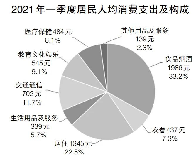 一季度,人均教育文化娱乐消费支出545元,增长55.7%,占人均消费支出的比重为9.1%;在居民消费支出中,增长最快。