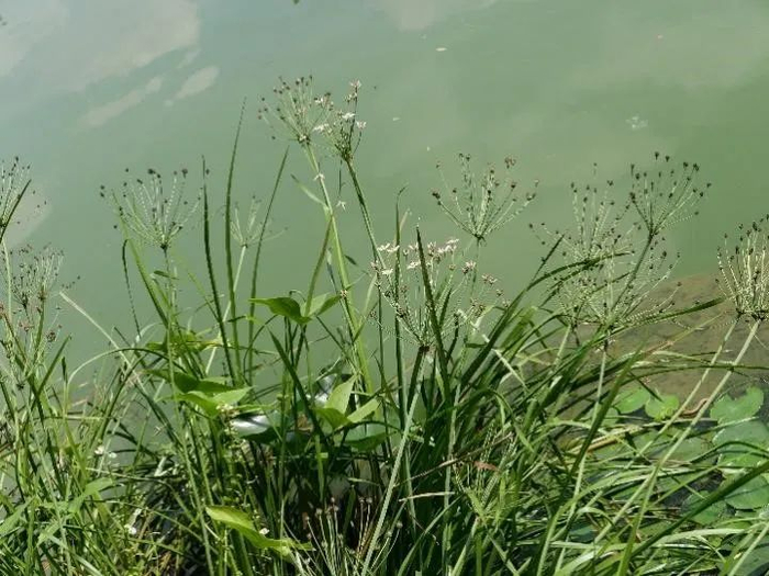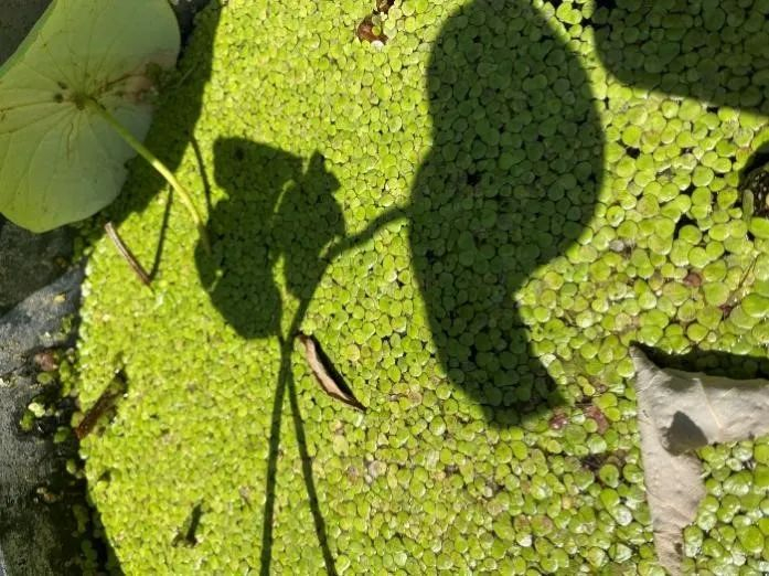 浮萍:有着青萍、田萍、水萍草等温柔唯美的名字;在水中浮萍常与紫萍混生,形成密布水面的漂浮群落。看似具有侵略性,会攻占大部分水面,却是良好的猪饲料、鸭饲料,也是草鱼的饵料。