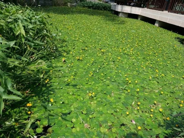 春天溪流解冻后,它们就开始生长,生长速度快,可以形成一个较大的单一群落,覆盖水体,看上去整个水面就是嫩绿的一大片。到了初夏,许多白色的花朵会从水里冒出来,铺满整个水面,看上去又成白花花一片。