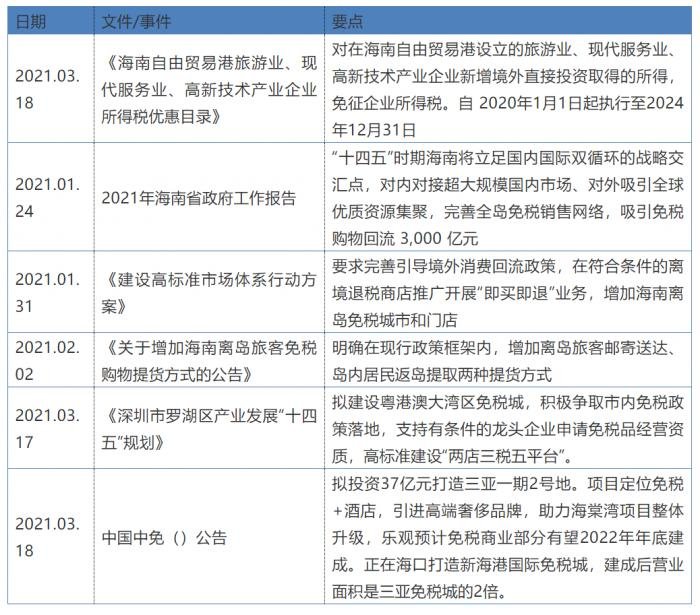 ①今年以来免税政策继续不断放开