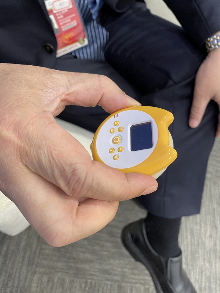 孙锟:就是这个像猫头一样的听诊器,这样孩子看到就不怕。然后基层医生戴个耳机,把听诊器放在专门的位置去采集声音。位置放哪里我们要培训,不是随便放的。声音通过蓝牙耳机直接上传到云之后,根据我们标注的算法进行云计算,听诊器小屏幕上有反馈,比如基层医生刚刚听到的杂音比如室间隔缺损的可能性是80%。
