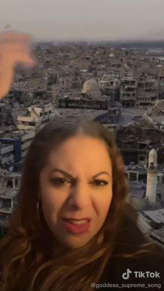 TikTok创作者@goddess_supreme_song也在视频中揭露了美国的虚伪。她贴出阿富汗战后的一片狼藉,“不要再表演关心穆斯林了!你们只是想抹黑中国!”