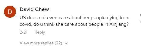 一位网友留言称,“美国连新冠死亡的国民都不在乎,有可能会关心新疆人民么?”