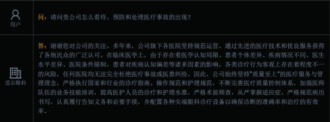 在公开互动平台,不少投资者据此对爱尔眼科发问:“如何处理医疗事故?”、“绩效考核是否只看手术量?”……