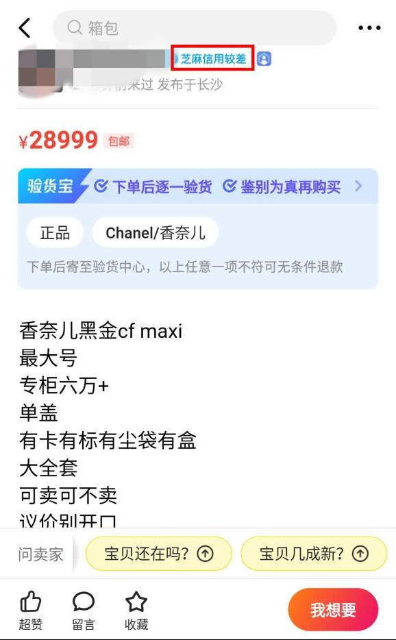 △ 多次转卖高仿奢侈品被投诉后,张莉莉的信用被打“差评”。