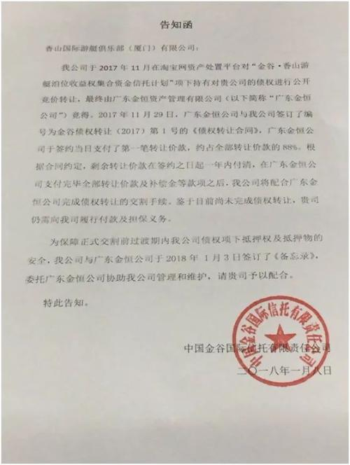 据陈长建向记者透露,2017年底,中国信达方面和金谷信托将持有的对香山公司的债权通过淘宝法拍进行了拍卖,最终以28.3991亿元成交,买家为广东金恒资产管理有限公司(以下简称广东金恒)。