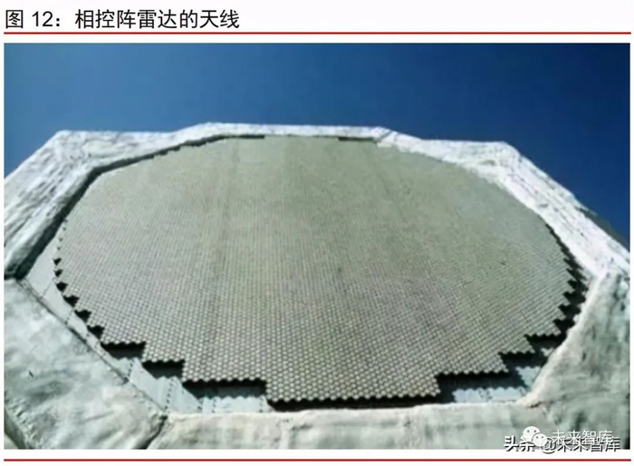 相控阵雷达大量应用,带动微波器组件需求上升。相控阵雷达是由大量相同的阵元组 成的雷达面阵,每一个阵元都可以控制其电流相位,通过控制阵元之间相位差来实现电子 扫描。相控阵雷达使用密集天线阵列,可同时针对不同方向进行电子扫描,目前已成为列 装主流。在探测、电子对抗等领域,微波组件占据相关制造成本的 60%以上,市场空间巨 大。我国已从雷达制造大国迈入雷达研发强国,目前处于大量使用单片微波集成电路的固 态模拟有源相控阵体制阶段,并逐步向数字阵列雷达过渡,相控阵雷达大量使用发射单元 也进一步带动了 TR 组件等微波器组件价值量占比提升。
