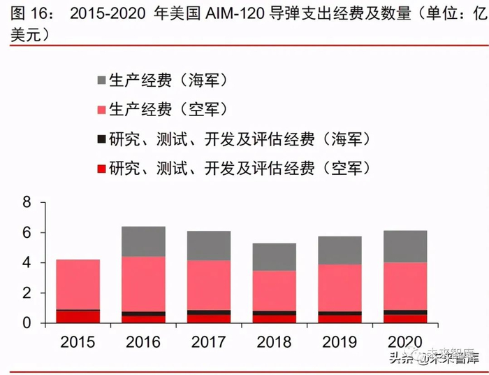先进空空导弹需求旺盛,或成为列装重点。现代战争中,带有主动雷达指导的先进空 空导弹,能够有效杀伤敌方空中力量,是空军争夺制空权的利器。AIM-120 是美军先进空 空导弹的典型型号,该系列是应美国空军、美国海军、北大西洋公约组织和其他盟国的行 动要求,研制的最先进的全天候、全环境中程空对空导弹系统。该系统是一种主动雷达制 导拦截导弹,具有固有的电子保护能力,用于空中应用,以对抗大规模穿透飞机,是美军 继 AIM-7 之后的第四代空空导弹。AIM-120 系列将通过全球定位系统辅助导航、改善网 络兼容性和通过双向数据链路能力提高机组人员的生存能力来提高精度。随着中国周边地 缘政治的复杂化,我们认为先进空空导弹需求旺盛,有望成为我国重点列装型号。