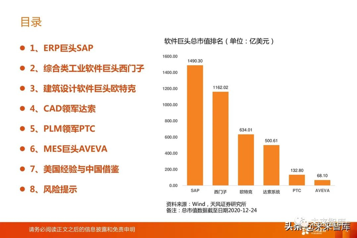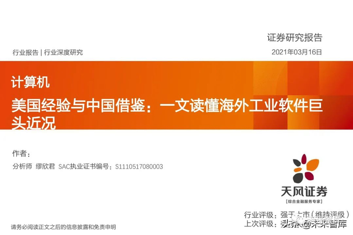 1、从中美映射的视角,我们认为,工业软件领域确实可以诞生大市值的工业软件公司。全球巨头复盘,对指导我 们企业战略研究、机构投资方向极为重要。
