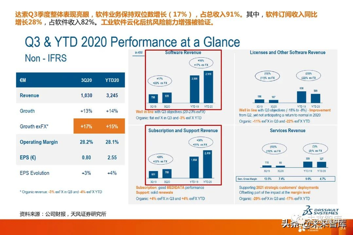 CAD领军达索:符合预期,软件业务双位数增长,产品云化成为趋势,与京东建立PLM合作。工业软件云化后 抗风险能力增强被验证。