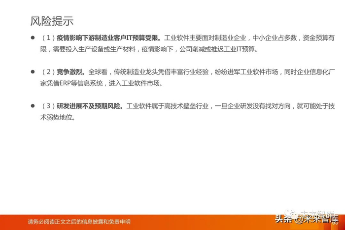 云化抗风险能力增强得到验证,国内工业软件公司未来可期。我们通过分析6家海外龙头公司最新业绩情况,发现几家海外龙头公司都平稳度过疫情,财务未受较大影响。我们认 为这与海外龙头云化程度较高,抗风险能力更高有关。以此推测,中国工业软件公司未来抗风险能力也将提高。