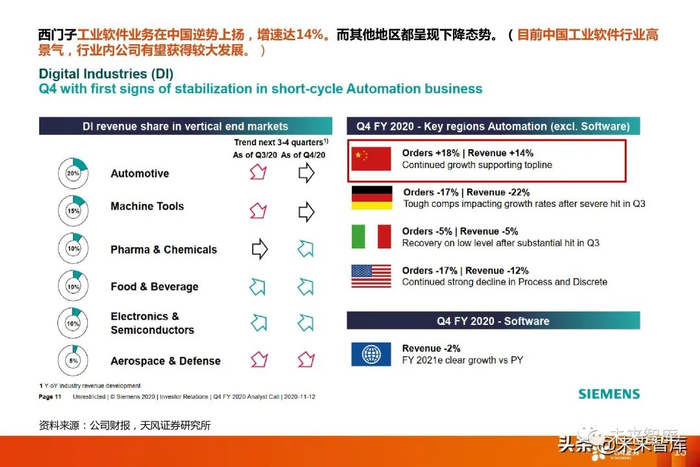 综合类工业软件巨头西门子:符合预期,平稳度过疫情,工业软件占据高毛利率宝位,中国业务逆势上扬 (14%)。目前中国工业软件行业高景气,行业内公司有望获得较大发展。