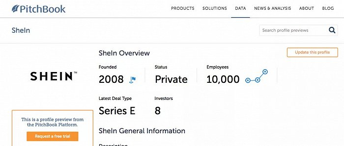 虽然在美国等海外地区,Shein已经成了非常耀眼的一颗快时尚新星,赶超Zara、H&M,远超Urban Outfitters等平价服饰品牌,但却很少有人能够说出它的背景,甚至在 Crunchbase搜索Shein,信息也不算完整。