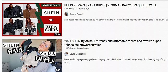 实际上,将西班牙快时尚Zara和中国跨境快时尚Shein进行这种同款对比的视频在YouTube上数不胜数,称得上时博们的“流量密码”——只要做这个话题,就会在YouTube的年轻观众中获得巨大的关注度。