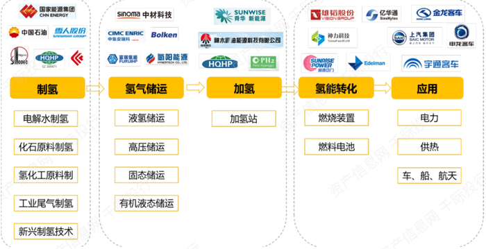 (1) 中国石化[600028.SH]是一家上中下游一体化、石油石化主业突出、拥有比较完备销售网络、境内外上市的股份制企业。公司是中国最大的一体化能源化工公司之一,主要从事石油与天然气勘探开发、管道运输、销售;石油炼制、石油化工、煤化工、化纤及其它化工生产与产品销售、储运;石油、天然气、石油产品、石油化工及其它化工产品和其它商品、技术的进出口、代理进出口业务;技术、信息的研究、开发、应用。中国石化是中国大型油气生产商;炼油能力排名中国第一位。在中国十大氢能企业中中国石化成于1998年的北京,是一家超大型的石油石化企业,自创办后品牌在多个体系上不断的完善,氢能产业方面的业务主要包含氢装置产氢、炼油重整副产氢等等。