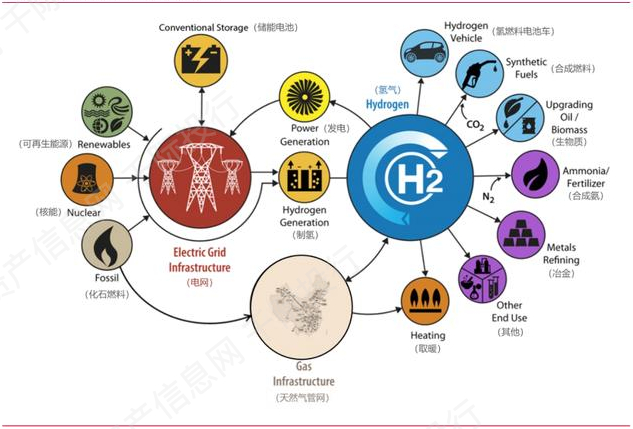 氢作为能源载体用来消纳可再生能源的利用已在全球开始推广,有助于可再生能源和氢能的协同发展,利用前景广阔;太阳能、风能、地热、核能、电能等等均可以转化成氢加以储存、运输或直接利用,是一种理想的载能体。氢能还是目前唯一可利用的循环能源,可取自于水,燃烧后又变成无任何污染的纯净水,循环往复以至无穷。氢能将成为21世纪的最有潜力的绿色能源。