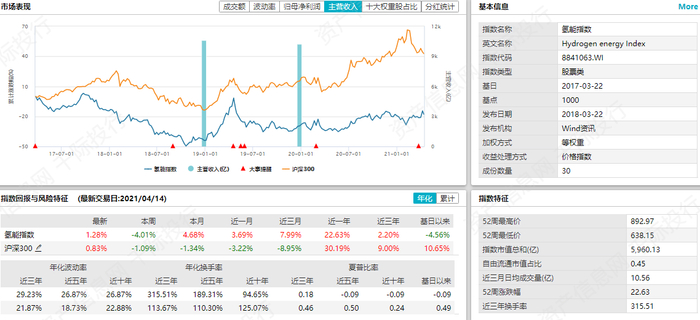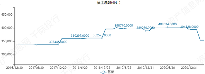 截止2021年4月15日,氢能板块沪深成分股个数为30,在近几年中呈上升趋势。企业总市值在近几年较为平稳,截止2021年4月15日,企业总市值为5960.1301亿元,企业员工总数达354382人。