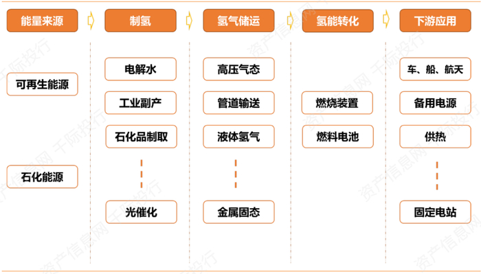 氢能产业链主要包括制氢—储氢—运氢—加氢几个环节。