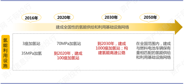 根据日本2014年公布的《氢燃料电池战略发展路线图》,在2025年前的第一阶段,将快速扩大氢能的使用范围,以促进燃料电池的装臵数量在2030年达到530万台,在2020-2030年的第二阶段,日本将全面引入氢发电和建立大规模氢能供应系统,将购氢价格降至30日元/m3;在2040年的第三阶段,将通过收集和储存二氧化碳,全面实现零排放的制氢、运氢、储氢。
