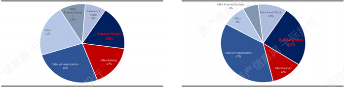 图 年产1000套、10万套燃料电池时燃料电池成本构成