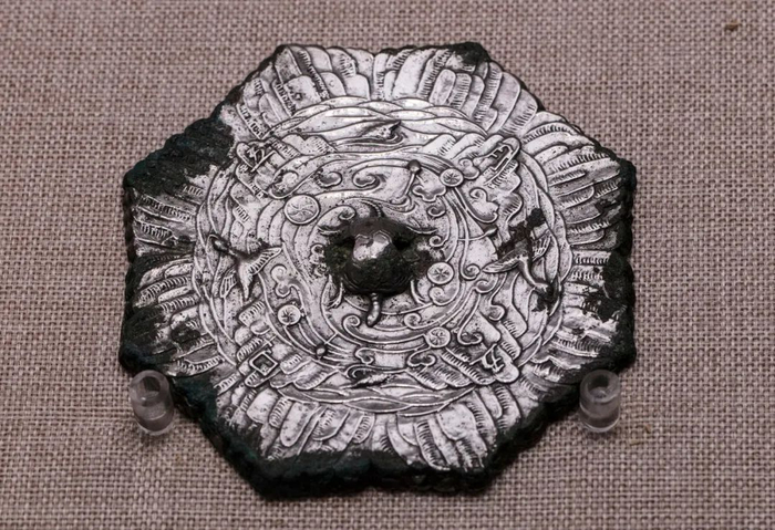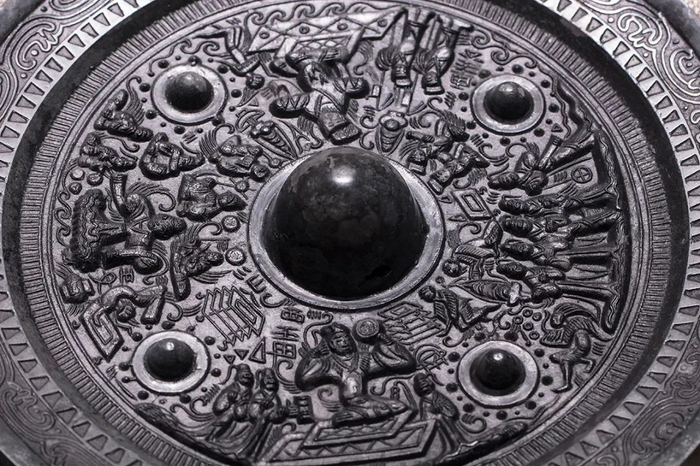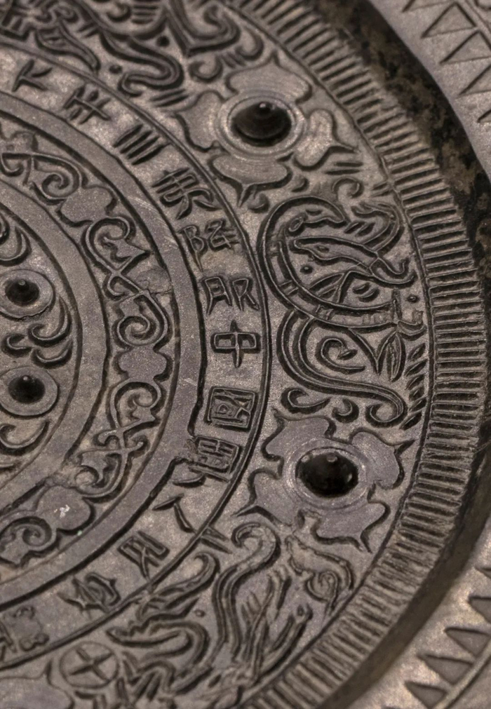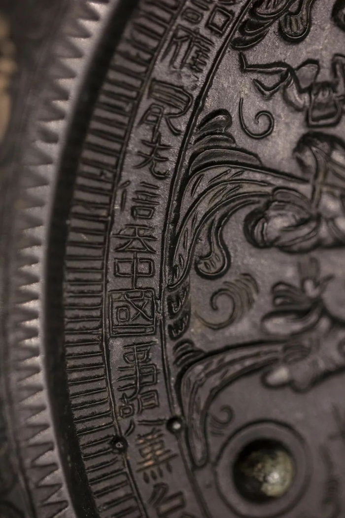 展出铜镜局部,“四夷降服,中国宁,人民安”汉代铜镜
