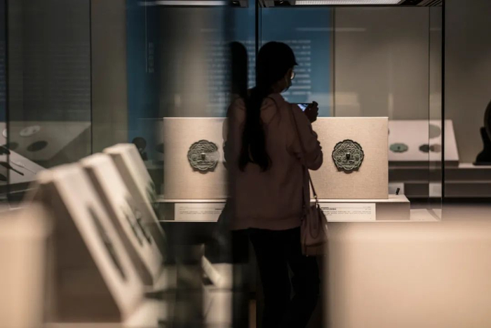澎湃新闻获悉,此次展览尤其难得的在于呈现了包括“游中国”“中国安宁”“四夷降服,中国宁”“中国强”“中国”五面“中国”铭文汉镜,勾勒出中国国家观念的形成过程,体现中国古人对中国强盛、国泰民安的美好祝愿。