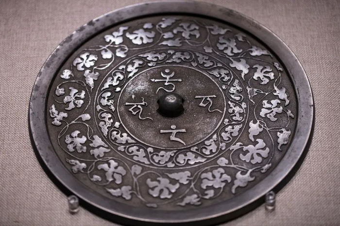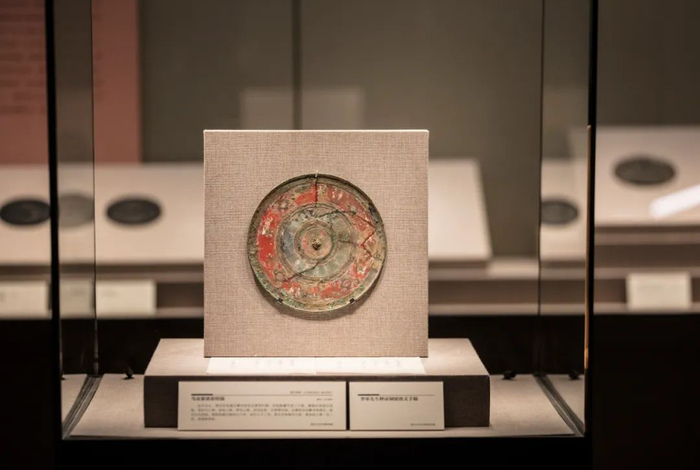展出铜镜局部,其中有“中国”二字