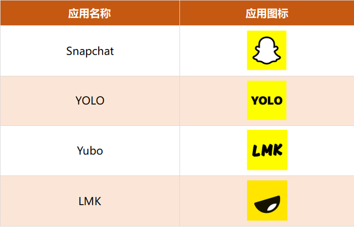 Snapchat 的图标大家都很熟了,黄色背景上有一个小幽灵。虽然没有任何商标和证据表面该黄色是 Snapchat 专属色,但确实看到这个颜色就会不由自主的想到 Snapchat,因此选择相近色,也可以说一种给用户熟悉感的好方法。