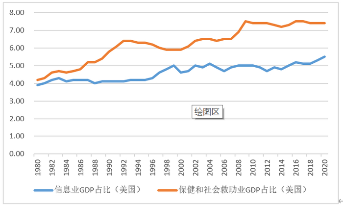 具体到行业来看,2019年中国信息传输、计算机服务和软件产业工业增加值在GDP中的比重为3.74%,与美国1980年信息产业工业增加值3.9%的GDP占比较为接近;医疗保健产业工业增加值在GDP中的占比尚不及1980年美国4.2%的水平。从人均GDP来看,2019年中国人均GDP约为10261美元,与美国1980年12547美元的人均GDP较为接近。以上指标均显示目前中国经济结构与1980年的美国相似,正处于经济转型初期,科技和医疗保健行业还有很大的成长空间。