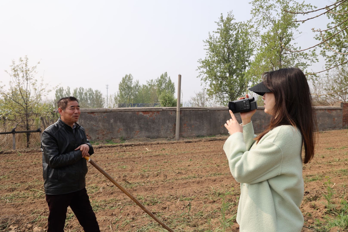 新华社记者孙清清在吕村村民家采访。(新华社记者 王秋韵 摄)