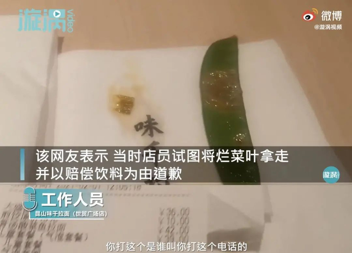 就在味千大搞改革的时候,有客人在苏州的门店吃出烂豆角。服务员第一反应是销毁证据,遭到阻拦后,才提出“送2杯饮料”和“退单”的补偿方案。记者联系工作人员,却得到了对方“谁让你打这个电话”的下意识回复。