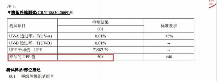 这把伞的紫外线防护系数(UPF)就达到了50+。