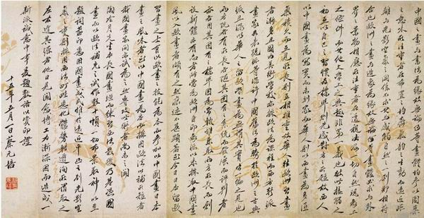 “我国山水画法,宏远广博,笔法章法,实超乎西国风景画之上。所不足者,远近透视之理或有所误,光阴明暗之变未能充分耳。”