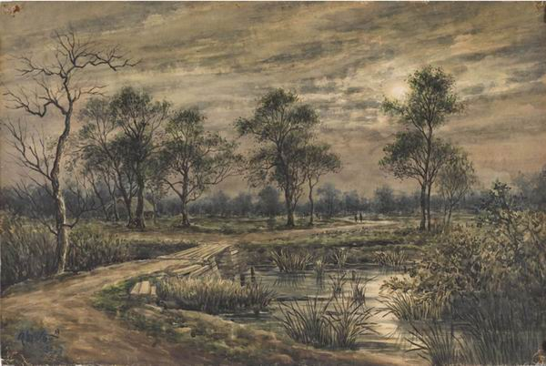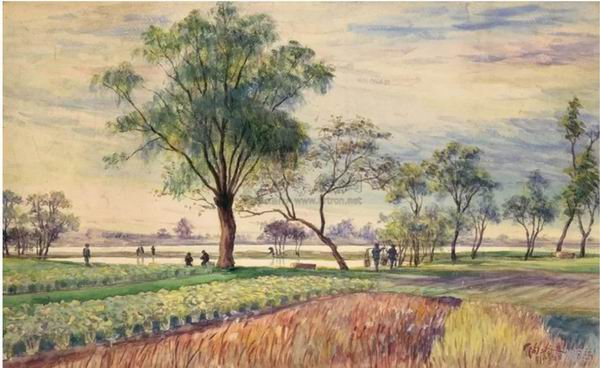 《江南水乡》 水彩 1922年作 香港佳士得 2006.11.27 第1092拍品