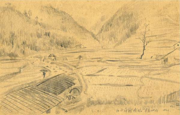 《早春细雨》铅笔写生 1921年作《中国名画家全集——陶冷月》158页 河北教育出版社 2003.5