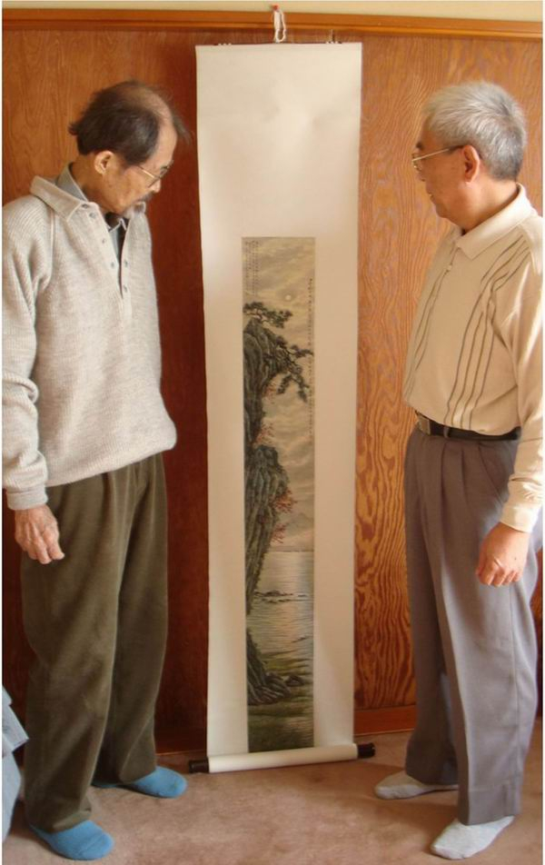 2008年10月20日,鹤田先生在神奈川府邸向陶为衍出示《江空秋月图》