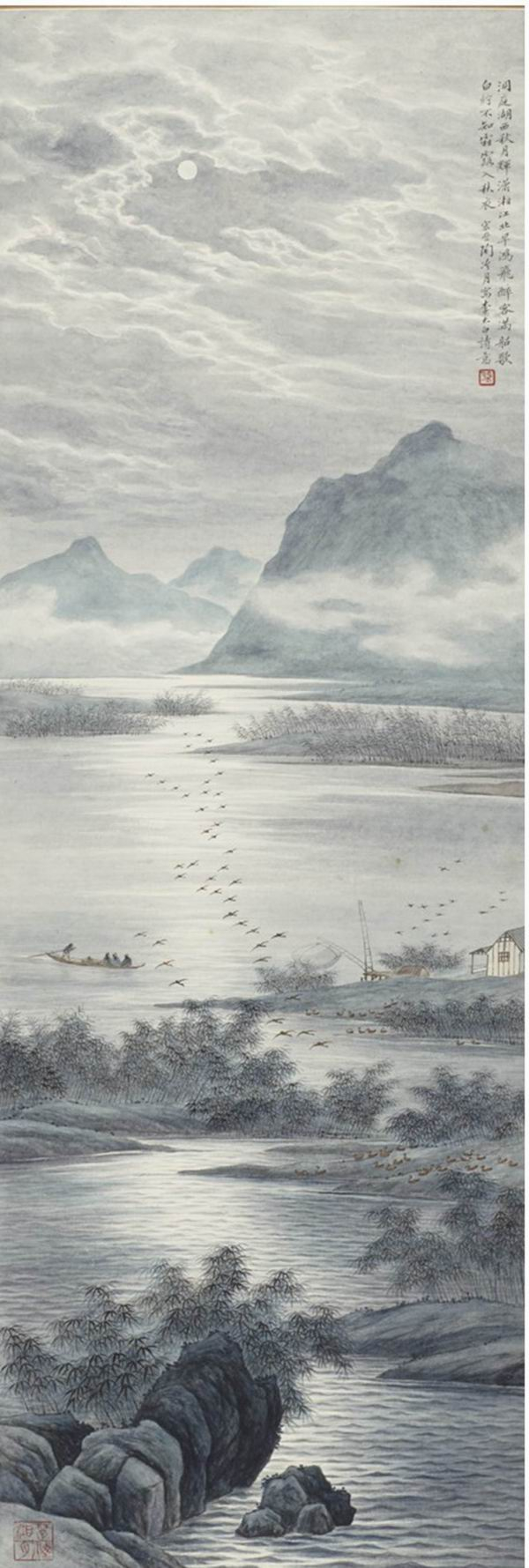 《平湖夜月》1932年作 冷月画识编号21012 香港苏富比2004.11.1第640拍品