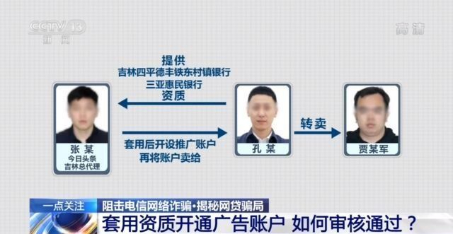 本案中,犯罪嫌疑人张某是“今日头条”在吉林的广告总代理,他们通过套用犯罪嫌疑人孔某等人提供的吉林四平德丰铁东村镇银行、三亚惠民银行在“今日头条”开通了大量推广账户,卖给了孔某,孔某又将这些广告席位卖给贾某军。贾某军因此得以在今日头条上投放了大量的网络诈骗广告。