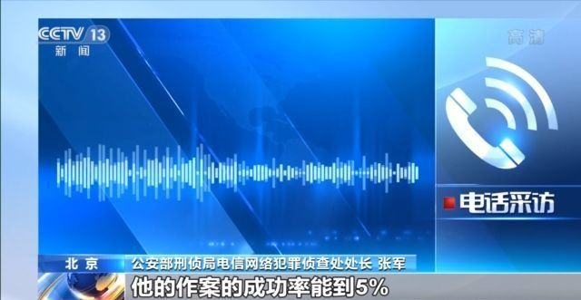 公安部刑侦局电信网络犯罪侦查处处长 张军:那么骗子依据有精准意向的公民个人信息,他的作案的成功率能到5%,5%已经很高了。如果没有这部分信息的话,那么他的成功率可能就是万分之几,所以骗子他一定要前端要获取信息。