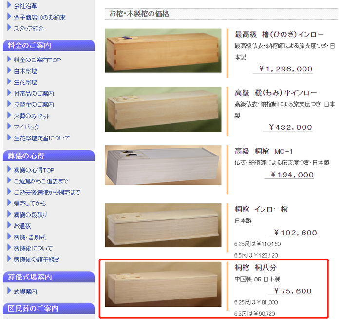 就算是最贵的全实木雕刻棺材也不过两三千块,加运费还不到日本的一半。
