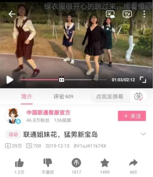 通过小姐姐跳舞进行品牌宣传的方式最早起源于电信运营商。2019年12月15日,中国联通上传了《联通姐妹花,猛男新宝岛》的舞蹈视频,播放量立马接近30万。中国电信也来效仿,今年3月16日推出了一款小姐姐在营业厅跳舞的视频,播放量已达144万。