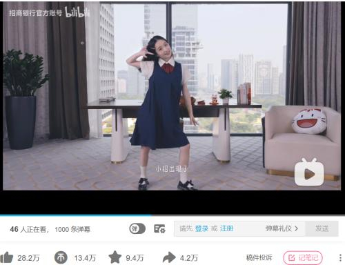 上文提到的招商银行书记舞正是该行3月26日在b站官方账号上推出的一个名为“【招行特供】挑战全网最甜书记舞”的视频。