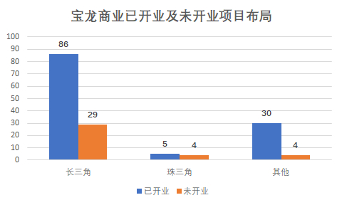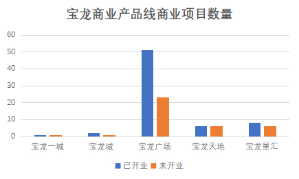 在营项目中,宝龙广场最多,其次是商业街宝龙星汇,高端项目宝龙一城和宝龙城则很少。