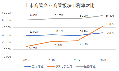 值得一提的是,毛利率方面,宝龙商业2020年商管业务毛利率为32.8%,相对其他上市商管企业而言,表现中等。