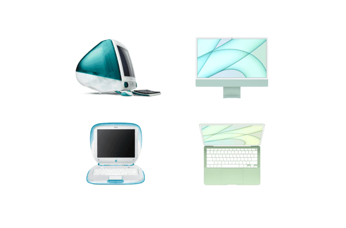 在五年前,银色的 iMac、MacBook,深空灰的 iPhone 或 iPad 是苹果产品给消费者的代表印象,苹果克制的用色与简约的设计给人们传递出“专业”的品牌形象。