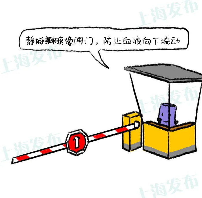 为了防止输送到半路的血液向下流动,