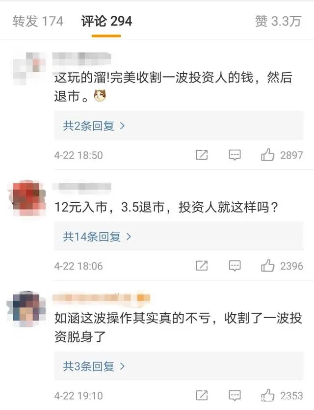 尽管亏损退市,不过不少网友“祝贺”如涵,至少从美股割一波韭菜: