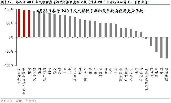 3. 过去40天成交额收盘价相关系数(取负值)历史分位数(corr_amount_close_40):行业指数量价相关系数越小,价格趋势可能越容易反转。